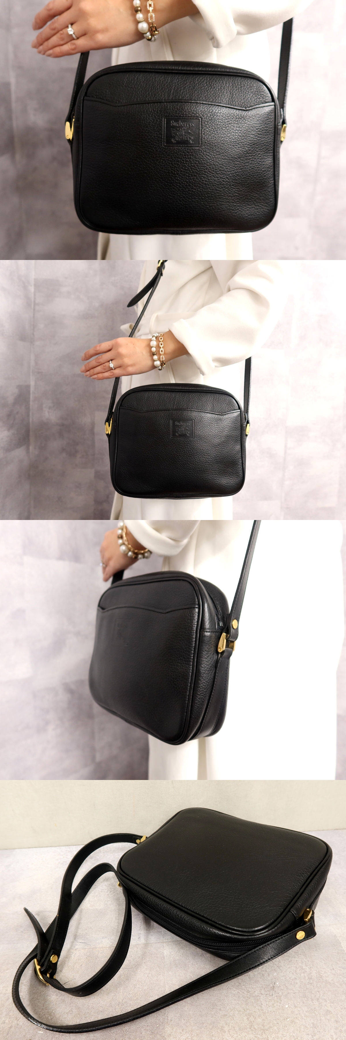 ●超美品●BURBERRY バーバリー●内ノバチェック●カーフ レザー 本革●ショルダー バッグ●黒●ゴールド金具●斜め掛け●かばん●Js63347 收藏