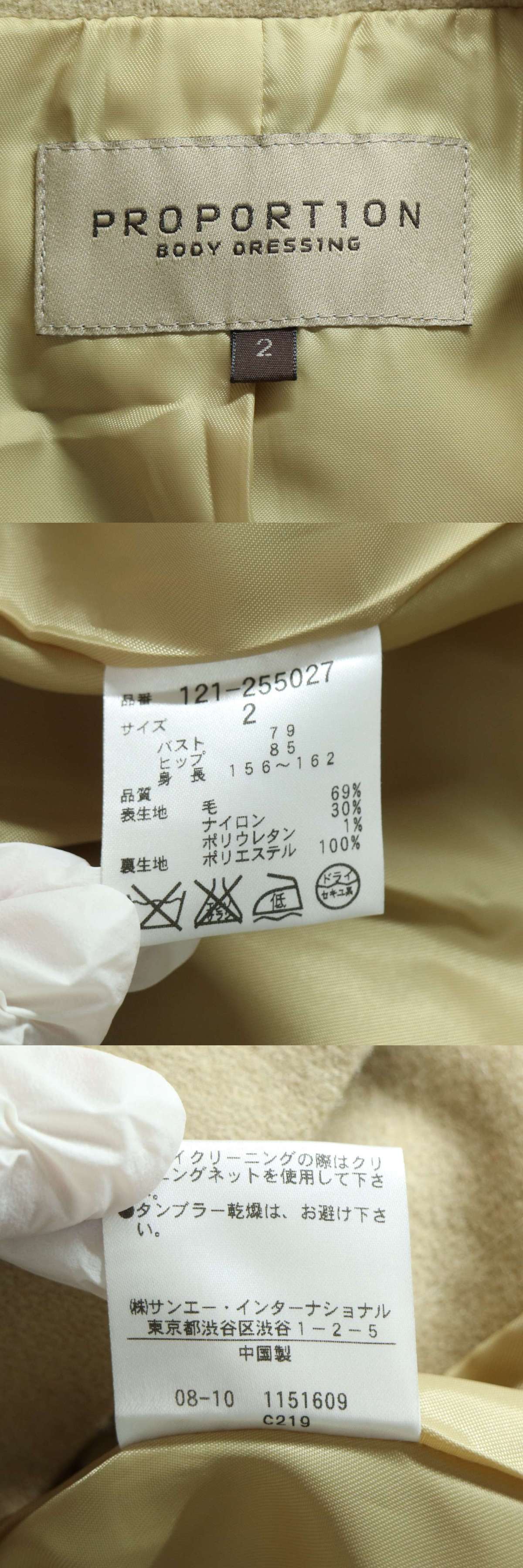 PROPORTION BODY DRESSING プロポーションボディドレッシング 秋冬 ウール★ ストレッチ Pコート Sz.2 レディース 收藏