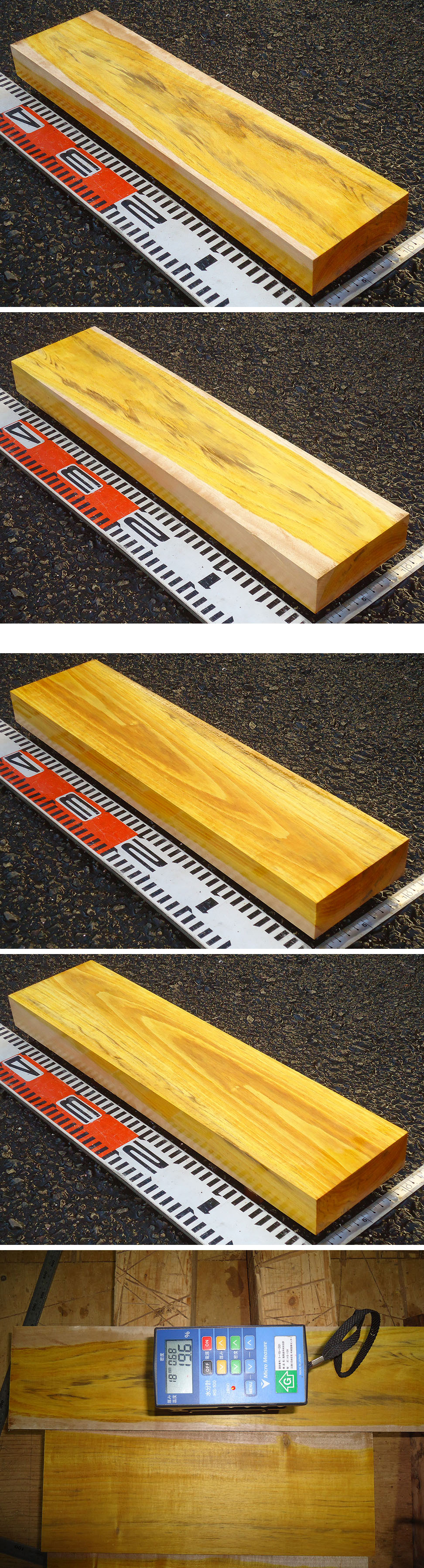 ・濃い黄金色、白身のコントラクトが美しい素材で、通常の黄櫨より1〜2ランク黄身色が濃い印象で、反発力と強度に富む木質です。