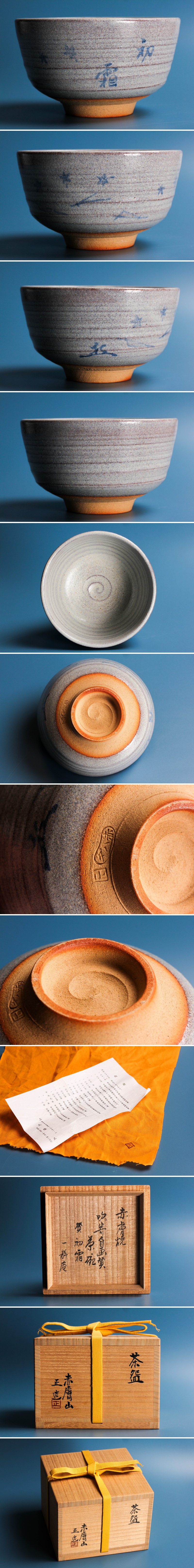 大塩正 銘『初霜』赤膚焼吹寄自画賛茶碗 表千家一静庵【木村宗匠】書付 共箱 共布 栞 茶道具 本物保証 收藏