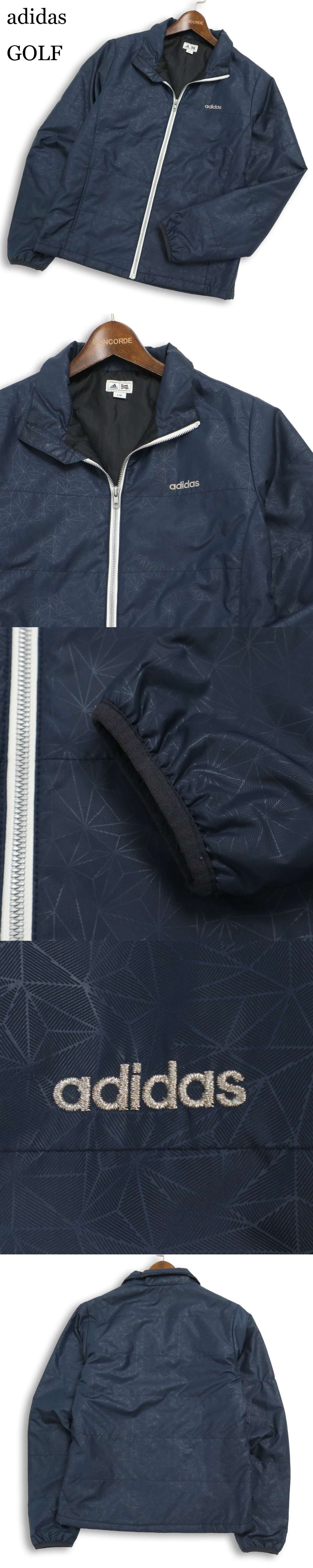adidas GOLF アディダス ゴルフ 秋冬★ 幾何学模様 総柄 中綿 ジャケット ウィンドブレーカー ブルゾン Sz.L メンズ 紺 收藏