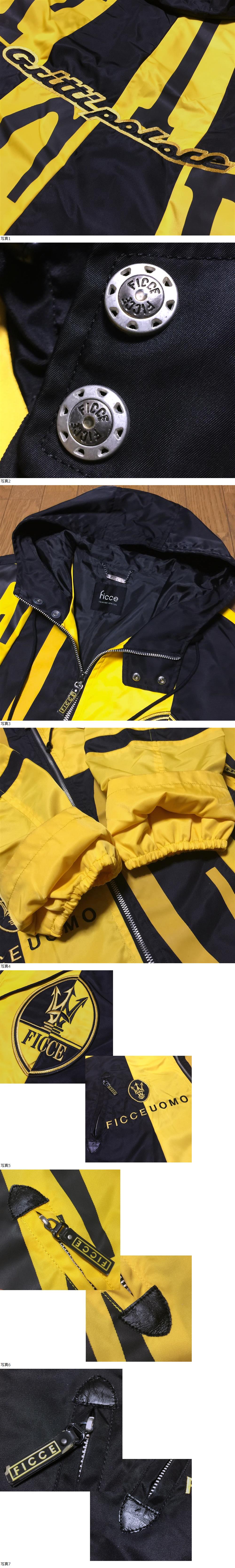 希少 当時物 FICCE UOMO YOSHIYUKI KONISHI フィッチェ ドン小西 ロゴ総柄 ナイロンパーカー フード コート ジャケット メンズ L-XL 黒黄 收藏