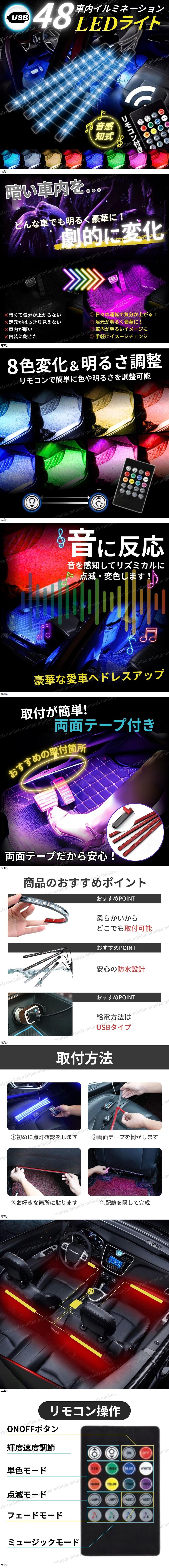 LED テープライト サウンド 12V 車用 USB イルミネーション フットライト 装飾 リモコン 操作 ドレスアップ RGB ルームライト フロアライト 收藏
