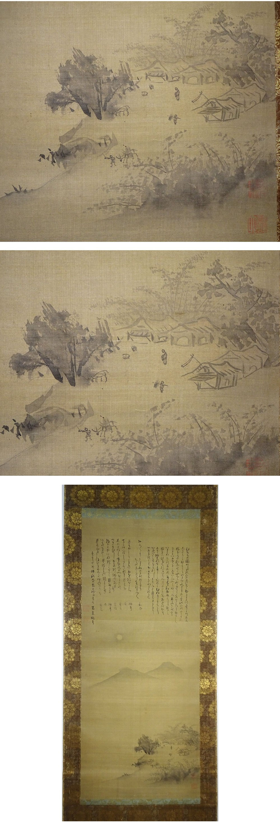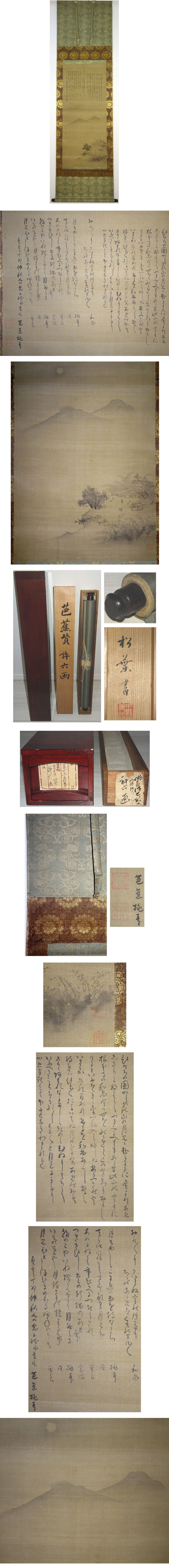 【掛け軸】 松尾芭蕉 森川許六 「水墨山水画賛」 真作 真筆保証 箱書きあり 二重箱 江戸時代 俳聖 彦根藩士 画は狩野安信に師事 收藏