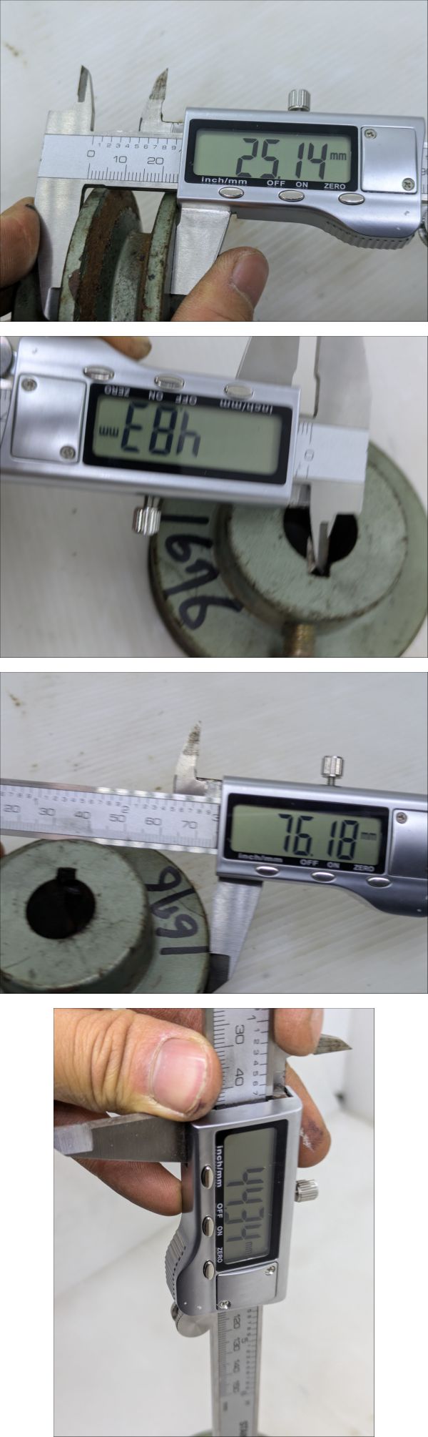 | ●●最後まで読んで下さい●●納得した上でご入札してください●● ●機械専門アカウントは**こ ち ら**です。 ●当方の別出品物を同時購入しても送料分安くなりません。 ●発送料金は入札ボタン付近にあり、沖縄、北海道、離島以外一律です。 ●塩尻市から発送します。 ●離島発送はできない場所がございますので、事前にお問い合わせください。 ●発送日は月、水、金、日です。急ぎの場合はご連絡をお願いします。 ------------------------------------------------------------------------------------------- ●1連のプーリーです。 ●Bベルトです。 ●軸 径:約Φ18mm ●鍵 幅:約5mm ●プーリー外径:約Φ76mm ●全体 厚さ:約44mm ●ベルト部 厚さ:約25mm ●書いたインクは消さずに発送します。 ●素人寸法のため、測定誤差があります。 ●中古品のため、サビや汚れがあります。 ●錆は各自で取り除いてください。 ●現状写真の通りのまま送ります。 ------------------------------------------------------------------------------------------- ●下の方にも画像がございます。※たまに写真の枚数が不足していて画像がない場合があります。 ●落札後、ご指定配達の時間帯がある場合はあらかじめご連絡してください。 | |||