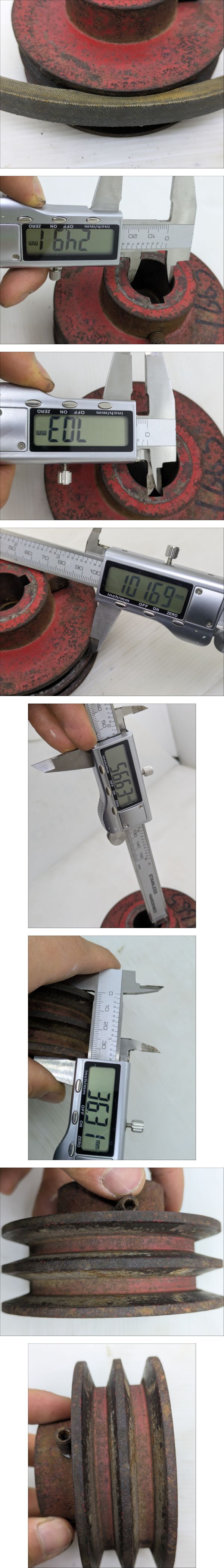 | ●●最後まで読んで下さい●●納得した上でご入札してください●● ●機械専門アカウントは**こ ち ら**です。 ●当方の別出品物を同時購入しても送料分安くなりません。 ●発送料金は入札ボタン付近にあり、沖縄、北海道、離島以外一律です。 ●塩尻市から発送します。 ●離島発送はできない場所がございますので、事前にお問い合わせください。 ●発送日は月、水、金、日です。急ぎの場合はご連絡をお願いします。 ------------------------------------------------------------------------------------------- ●2連のプーリーです。 ●Aベルトです。 ●軸 径:約Φ25mm ●鍵 幅:約7mm ●プーリー外径:約Φ100mm ●全体 厚さ:約56mm ●ベルト部 厚さ:約36mm ●書いたインクは消さずに発送します。 ●素人寸法のため、測定誤差があります。 ●中古品のため、サビや汚れがあります。 ●錆は各自で取り除いてください。 ●現状写真の通りのまま送ります。 ------------------------------------------------------------------------------------------- ●下の方にも画像がございます。※たまに写真の枚数が不足していて画像がない場合があります。 ●落札後、ご指定配達の時間帯がある場合はあらかじめご連絡してください。 | |||