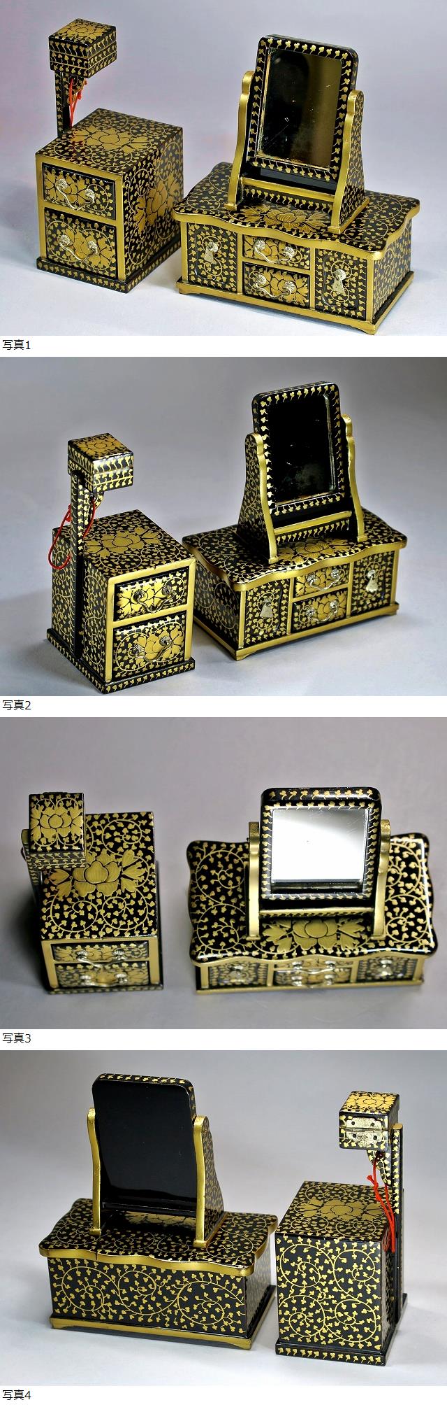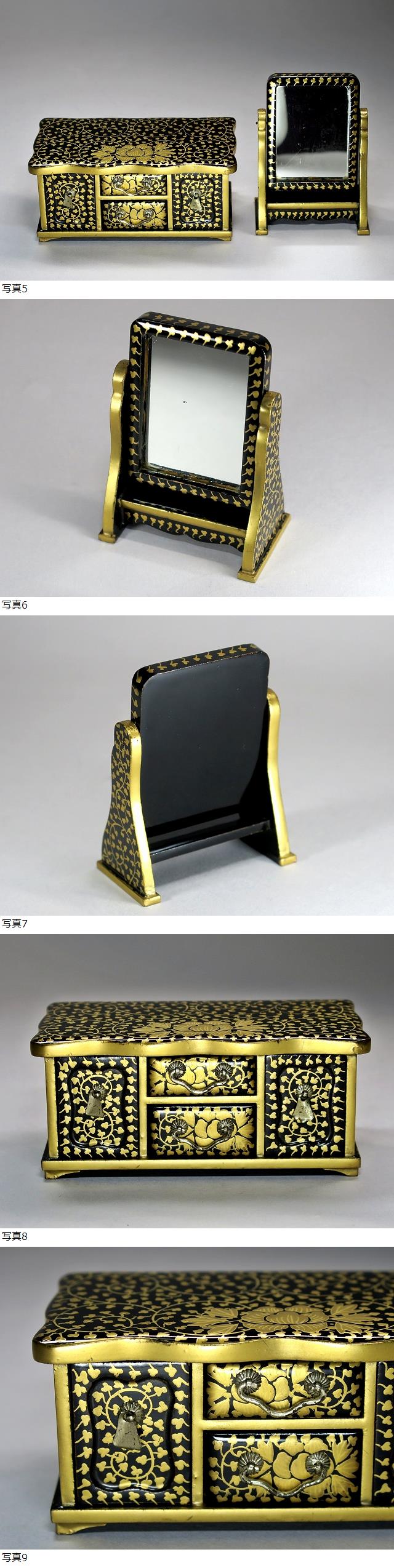 ◇雛道具 京都 田中彌 鏡台・針箱 大極上本金蒔絵唐草 天然木漆塗 雛人形 共箱