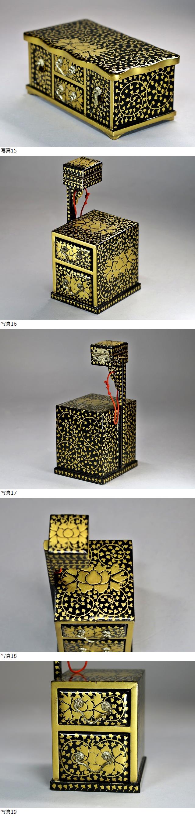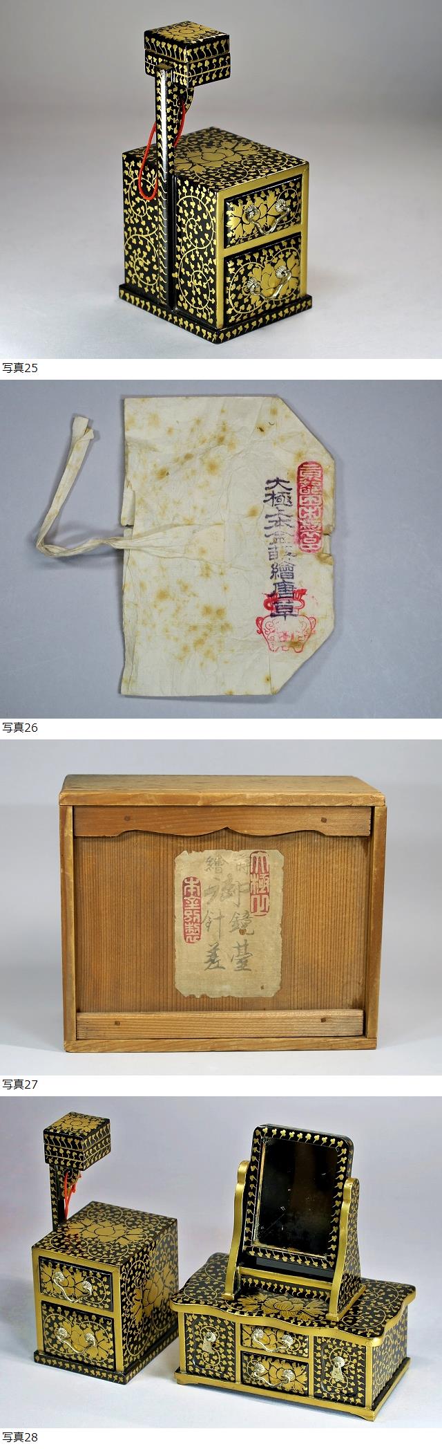 ◇雛道具 京都 田中彌 鏡台・針箱 大極上本金蒔絵唐草 天然木漆塗 雛人形 共箱 收藏