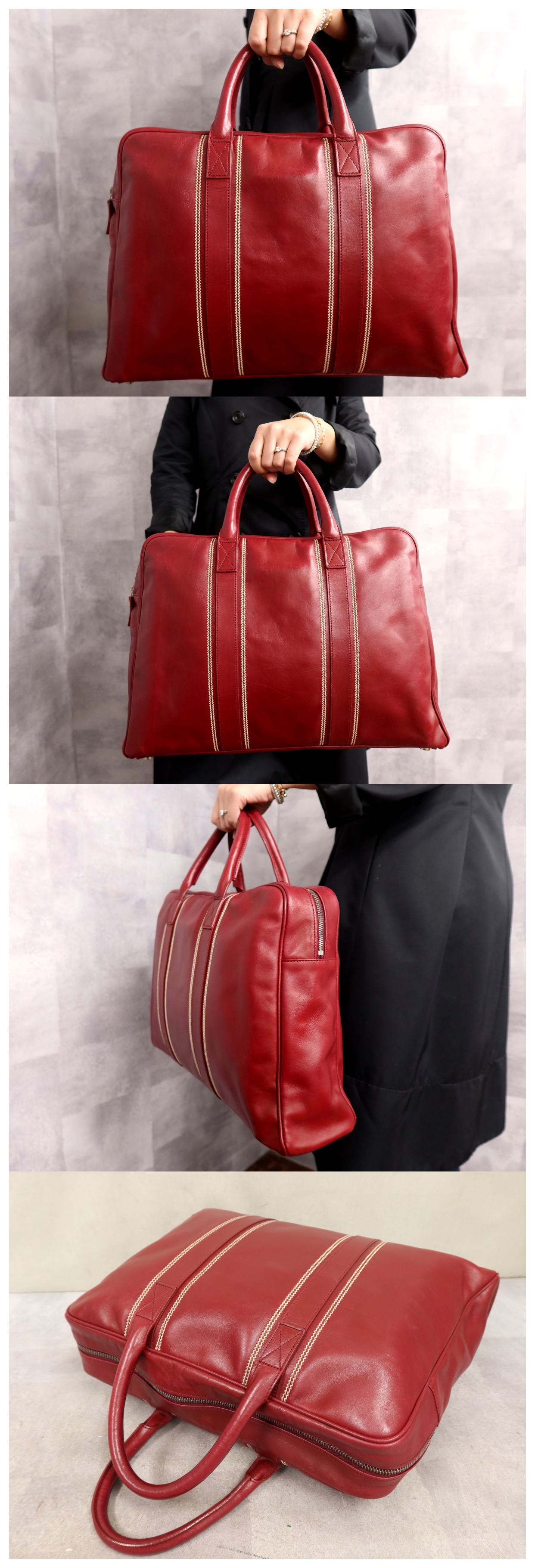 ●超美品●dunhill ダンヒル●メンズ●ステッチ●カーフ レザー 本革●ブリーフケース●レッド●シルバー金具●A4 書類 ビジネス●Js64344 收藏