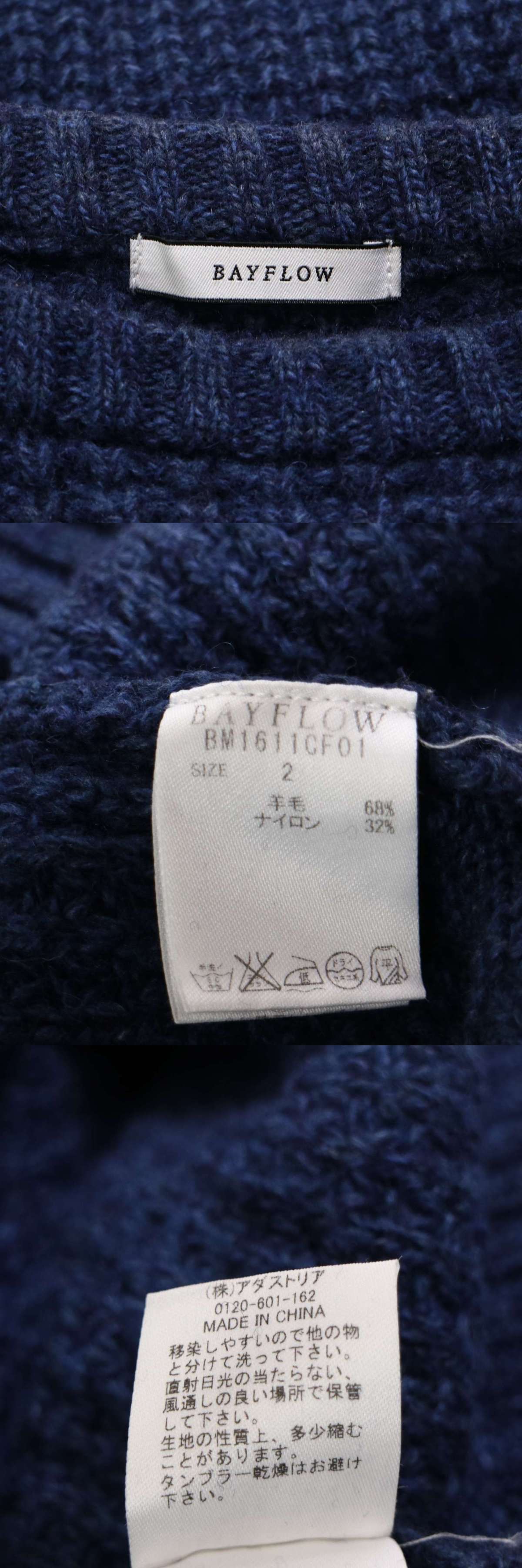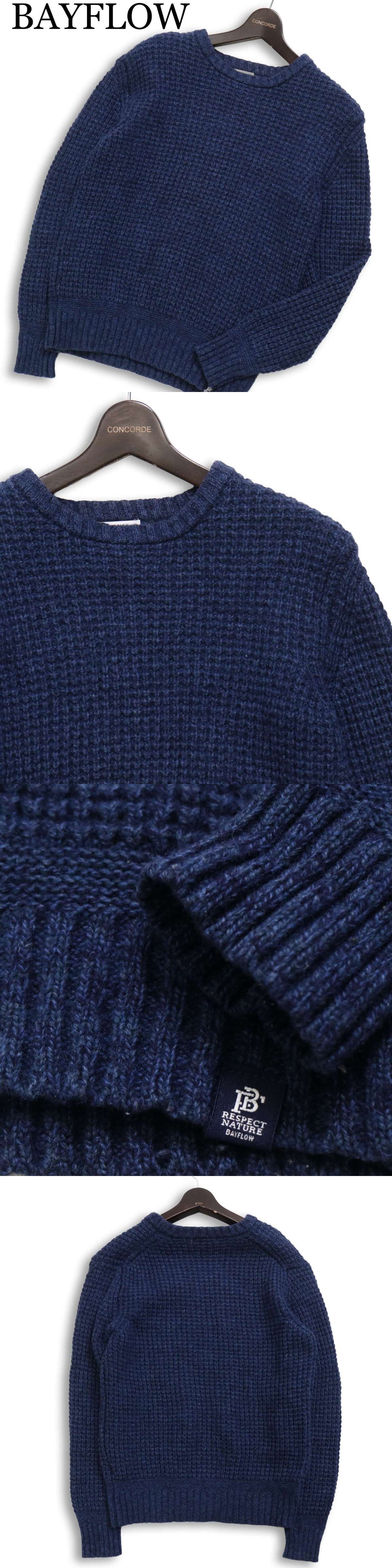 BAYFLOW ベイフロー 秋冬 インディゴ クルーネック ローゲージ★ ウール セーター ニット Sz.2 メンズ 紺 ネイビー 收藏