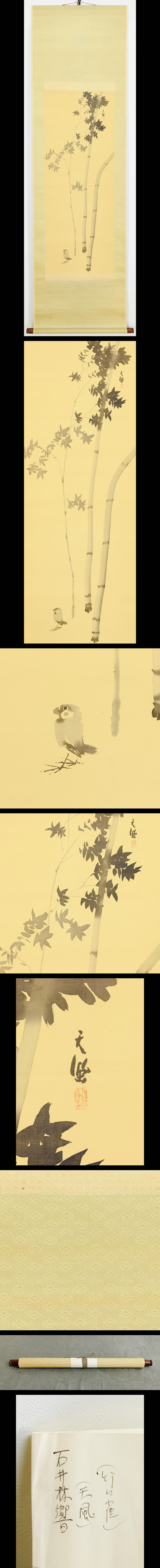 【真作】【WISH】石井林響「竹に雀」日本画 掛軸 絹本 竹の気配に身を休める雀 〇師:橋本雅邦 帝国絵画協会 紅児会会員 #25120055 收藏