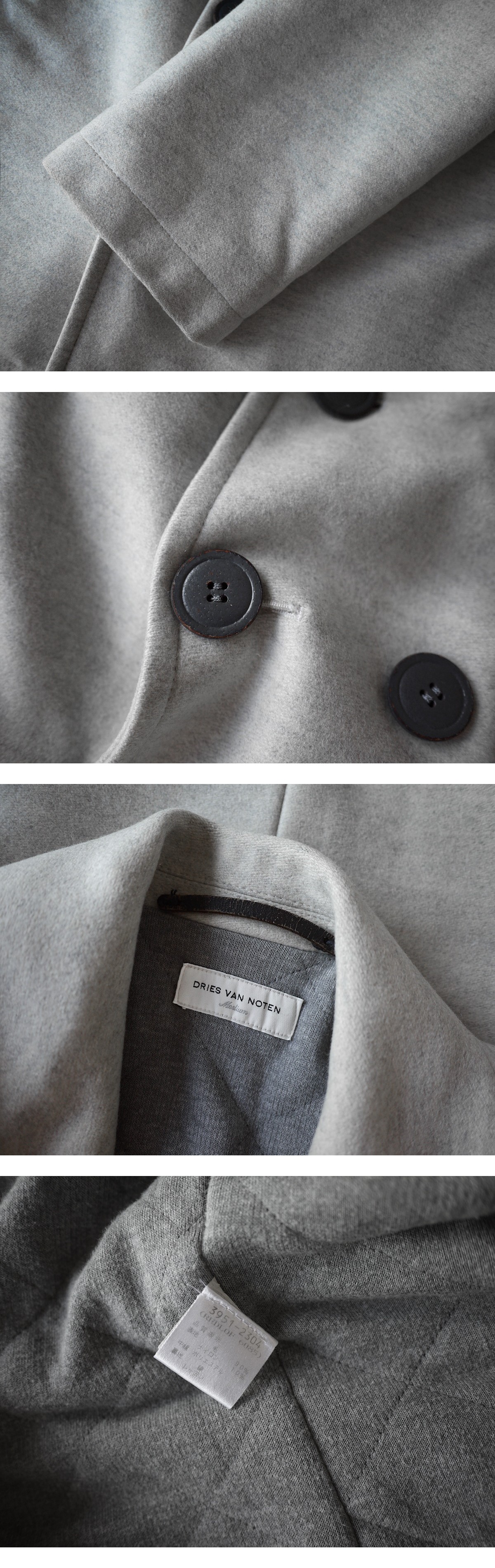 brand DRIES VAN NOTEN price \254,000(参考上代) material wool 90% nylon 10% color Gray size Medium 肩幅49 着丈79 袖丈65 脇下身幅53(素人寸法のため誤差はご了承ください) 状態 全体的にきれいなお品物でございます。袖口裏地に破れが見られますがその他特筆すべきダメージは見受けられず末永くご使用頂ける状態です。 |