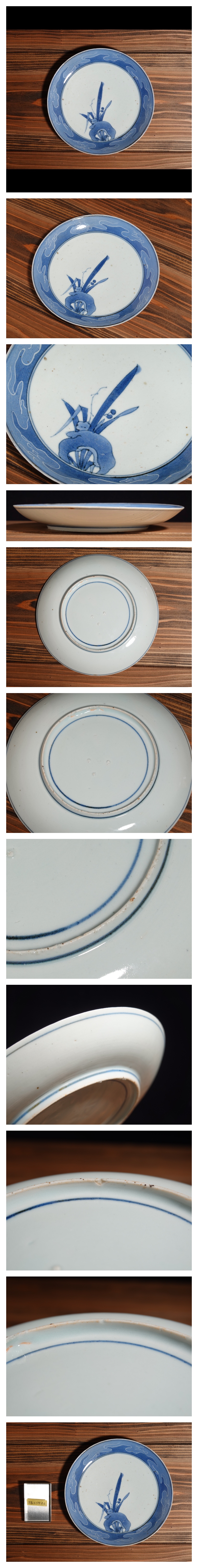 【聖陽堂】江戸時代 前期 17世紀後半 古伊万里 藍九谷 『 染付 水仙文 墨弾き縁 中皿 』 七寸皿 【藍柿右衛門 茶懐石】 r8 0114 06 收藏