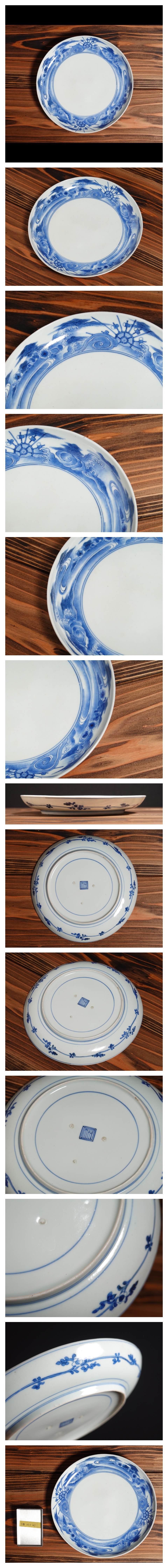 【聖陽堂】江戸時代 前期 17世紀末~18世紀初 古伊万里 藍柿右衛門 『 染付 水車 流水 桜文 中皿 』 七寸皿 【藍九谷 茶懐石】 r8 0111 01 收藏