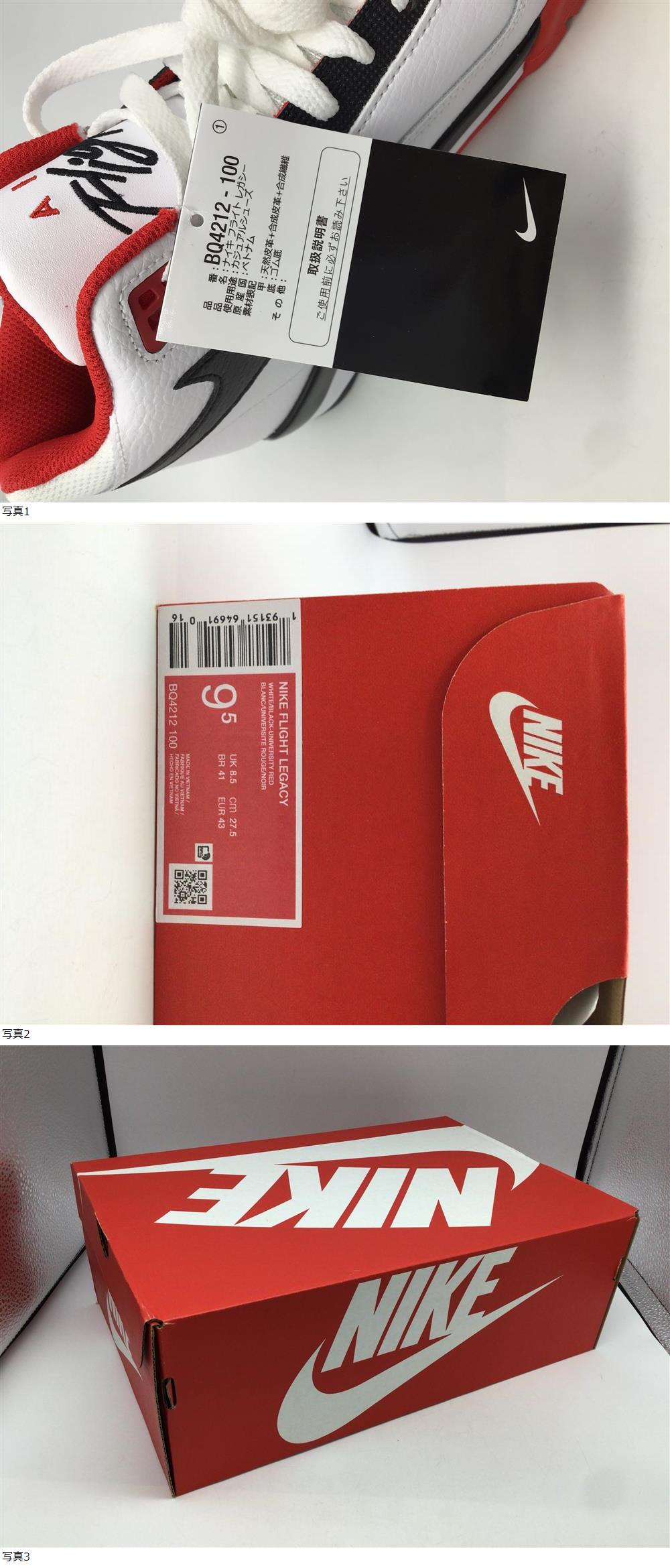 n0268 NIKE ナイキ FLIGHT LEGACY フライト レガシー 白 ホワイト 赤 レッド 黒 ブラック 27.5cm US9.5 箱付き スニーカー メンズ 紳士靴 收藏