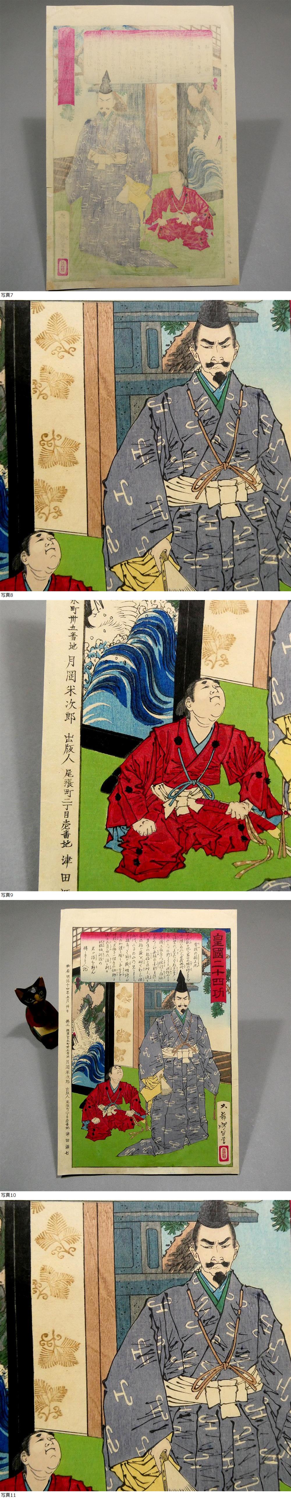 月岡芳年◆明治14年 木版浮世絵◆「皇国二十四功 曽我の箱王丸」◆曽我五郎 宿敵・工藤祐経と対面■仇討ち 武者絵 錦絵 古美術 本物保証 18 收藏