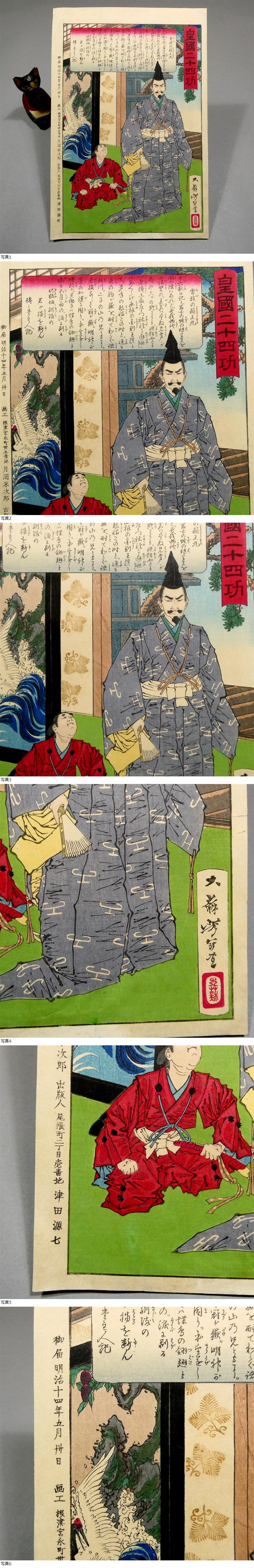 ■ 月岡芳年 明治14年 木版浮世絵 「皇国二十四功 曽我の箱王丸」 曽我五郎 宿敵 工藤祐経と対面 ■