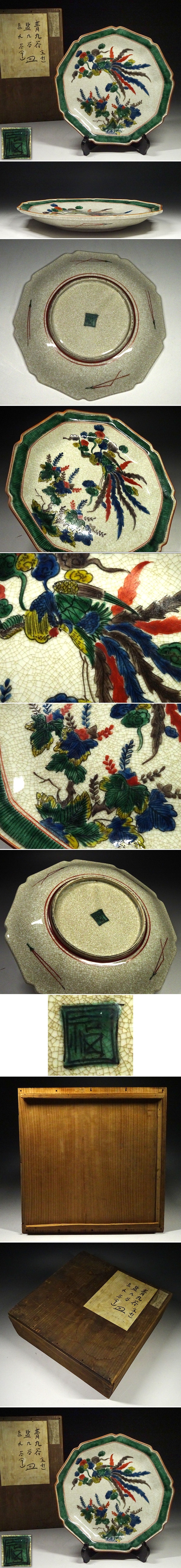 緑屋h■ 時代物 古九谷 青手九谷 皿 木箱 古陶磁 i9/12-6614/18-2#100 收藏
