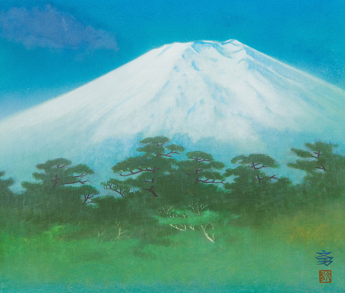 【1on1】真作 竹角文男 『朝霧不二』 日本画 彩色 10号 共シール 額装 / 1953年広島生 清和美術協会運営委員 現代日本画展最優秀賞 收藏