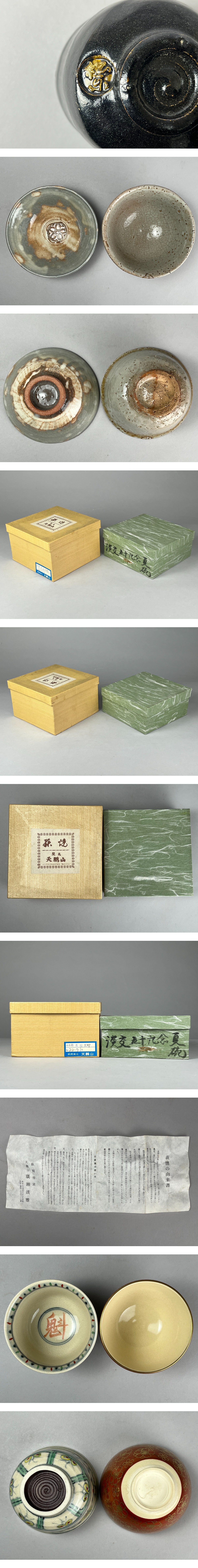A897 荻焼 天鵬山 京焼 橋本永豊 黒樂 御砂焼 清水焼 安南五彩巳茶碗 茶碗 7点◇抹茶碗 茶道具 古美術 骨董 コレクション 收藏
