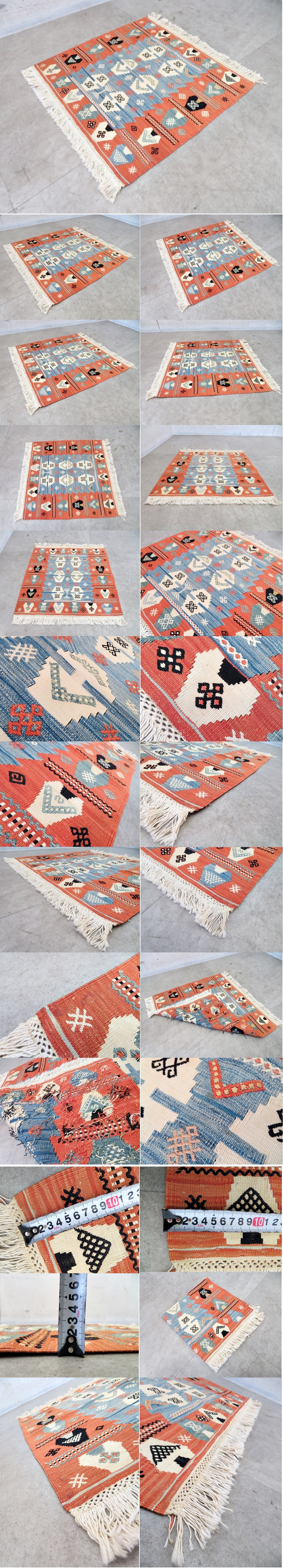 ■P099■デッドストック■キリム■トルコ製■ラグマット■絨毯■ウール■手織り■平織り■オールドキリム■ニューキリム 收藏