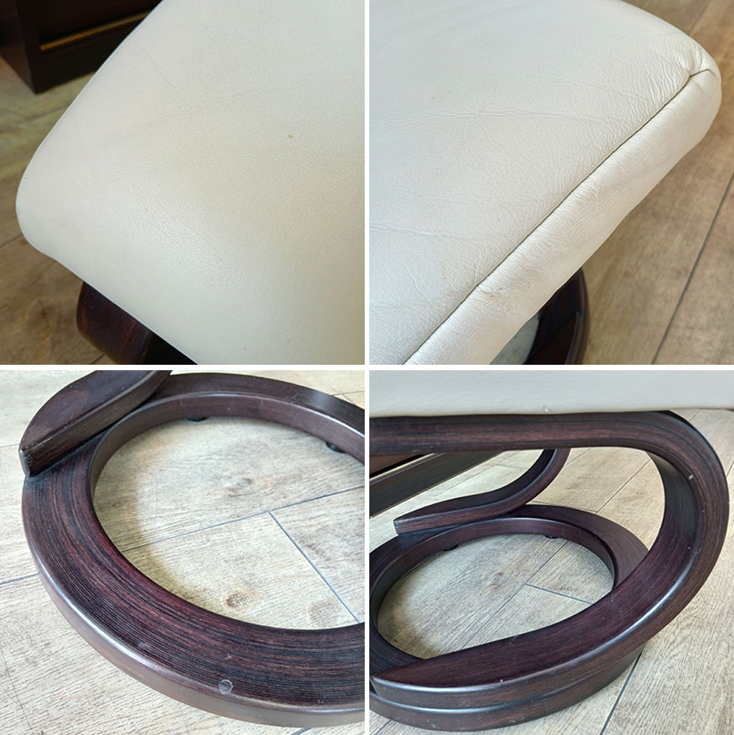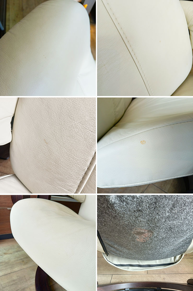こちらはIDC 大塚家具取扱い himolla ヒモラ 本革 リクライニングチェア ゼロストレスチェア Sサイズ オットマン付き です。 中古品です。 小柄な方でも使いやすいコンパクトサイズのリクライニングチェア ゼロストレスチェア Sサイズは、1948年創業の歴史あるドイツソファブランド、 「himolla ヒモラ」が製造するリクライニングチェアです。 スーパーラスティックというウレタンを使用し、長時間の使用でも疲れにくく座り心地抜群です。 小柄な方でも使いやすいコンパクトサイズで、リラックスするのにおすすめです。 ![]() スムーズなリクライニング動作で座面と背もたれの角度を自由に調整できるので、 自分の好みの姿勢でリラックスできます。 左右のレバーを締めるとリクライニング動作を重くすることができます。 ※ストッパーとして動きを完全に止めるものではありません。 また、360度回転致しますので立ち座りもしやすい仕様となっています。 カラーはやさしいアイボリー色です。 本革のしなやかな肌触りが心地よく、身体を支えてくれます。 脚を伸ばしてゆったりとくつろげるオットマン付きです。 ぜひこの機会にご検討ください。 【コンディションについて】 コンディションにつきましては以下の画像も併せてご覧ください。 ![]() 【チェア小傷・擦れ/裏面汚れ】 多少の小傷・擦れなどの使用感があります。 座面裏面の汚れはご使用時には見えない部分です。 ![]() 【オットマン小傷・擦れ】 上記のような多少の使用感はありますが、 しっかりとした作りでご使用上の問題は無く、まだまだ永くご愛用頂けるお品です。 皆様のご入札をお待ちしております。 また、こちらのお品は 再良市場 天白店(名古屋市天白区焼山1丁目308番地)にて店頭展示しております。 現物を確認してみたい方は、是非、再良市場 天白店にお越しください。 再良市場の他のお品物はこちらから!