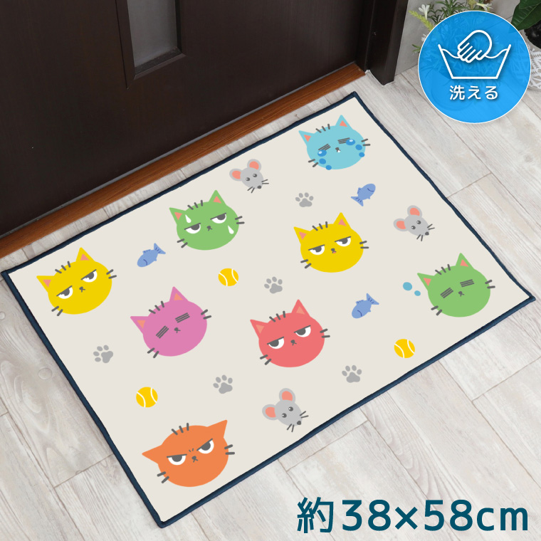 玄関マット 室内 洗える 約38×58cm キッチンマット アクセント イラスト マット 転写プリント TEN182 ねこ カラフル ネズミ アニマル 收藏