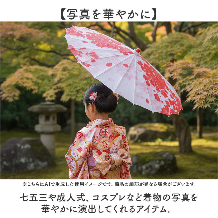 | 商品説明 | ・・【和の演出を楽しむ】 ・・和装での写真撮影にピッタリな和傘が登場。 ・【写真を華やかに】 ・・七五三や成人式、コスプレなど着物の写真を華やかに演出してくれるアイテム。 ・【丈夫で破れにくい】 ・・定番の紙張りではなく布張りにすることで、破れにくくしなやかな印象に。 ・【和にこだわったデザイン】 ・・傘の中棒や持ち手、親骨など各所に木製のパーツを使用しているので、和なイメーシがさらにアップ。 ・【さまざまなシーンで活躍】 ・・日本舞踊のお稽古や劇の小道具、和室のインテリアなど幅広く活用できる上品で華やかな和傘。 |