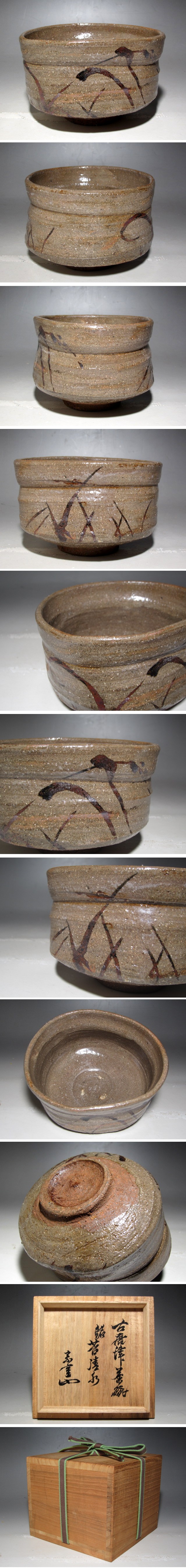 古唐津茶碗「苔清水」です。 時代を感じる見事な出来栄えの貴重な作品です。 底部に裏千家十三世円能斎の花押のある名品です。 サイズ 直径13cm/高さ8.5cm(多少の誤差はお許しください) 状態 一見して疵やヒビ・直しは見られません。 骨董品という事をご勘案頂き、時代経過のスレや、小さな傷がある場合があるかもしれませんのでご承知置きください。 | |||