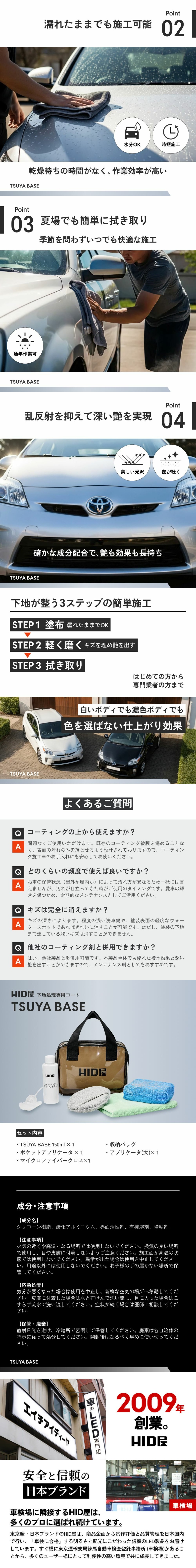 | 【商品名】HID屋 TSUYA BASE ポーチセット 【付属品】:TSUYA BASE 150ml×1本 ポケットアプリケータ × 1個 アプリケータ(大)×1個 マイクロファイバークロス1枚 収納バッグ×1個 【注意事項】 ・火気の近くや高温になる場所では使用しないでください。 ・換気の良い場所で使用してください。 ・皮膚や目に付着しないようご注意ください。 ・敏感肌の方は、保護手袋の着用をおすすめします。 ・使用前に、目立たない部分で試してからご使用ください。 ・用途以外には使用しないでください。 ・施工面が高温の状態では使用しないでください。 ・お子様の手の届かない場所で使用してください。 ・使用後は手をよく洗ってください。 |