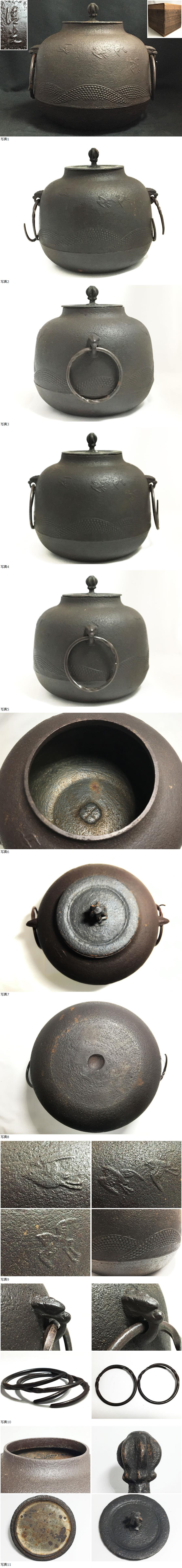 釜師 佐藤清光 清光作 波千鳥紋 撫肩釜 炉釜 茶釜 風炉釜 鉄製 銅蓋 釜鐶 鐶付 約3.0kg 水漏無 茶道具 金属工芸 合わせ箱付 收藏