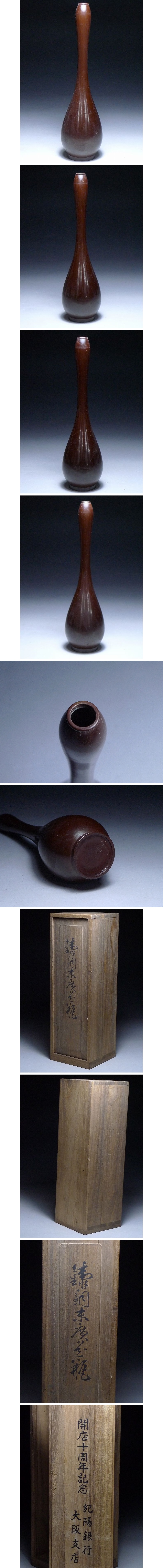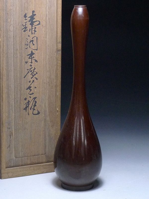 60MK199★鋳銅末廣花瓶・共箱付・高さ24cm 重さ270g・花器 花入 置物 インテリア 古美術 收藏