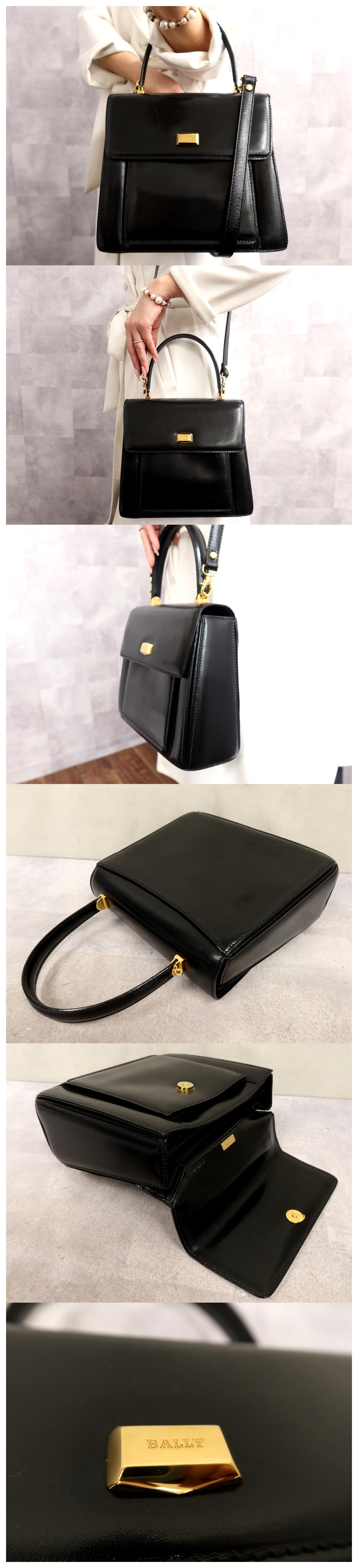 ●超美品●BALLY バリー●トップハンドル●カーフ レザー 本革●2way ハンド バッグ●黒●ゴールド金具●ヴィンテージ●腕掛け●Js65117 收藏