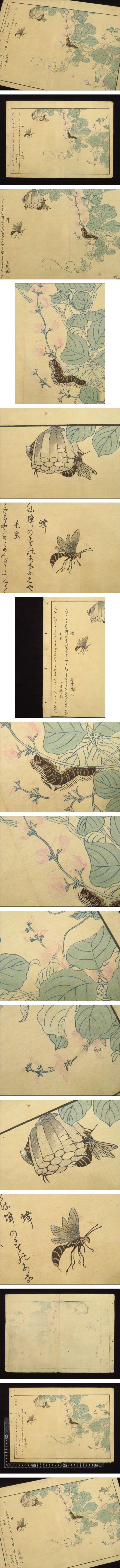 6)喜多川歌麿 木版画『虫えらみ◆蜂/毛虫』復刻 戦前か?◆画本虫撰 蔦屋重三郎 狂歌三部作 彩色 浮世絵 虫ゑらみ 昆虫画 植物画 博物画 收藏