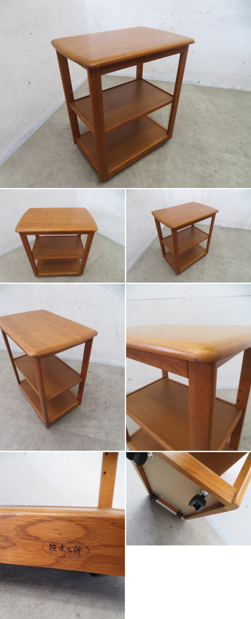 ■P443■展示品■浜本工芸■ナラ無垢材■マルチワゴン■サイドテーブル■ラック■キャスター付き■学習ワゴン■書斎■国内生産■皇室献上 收藏