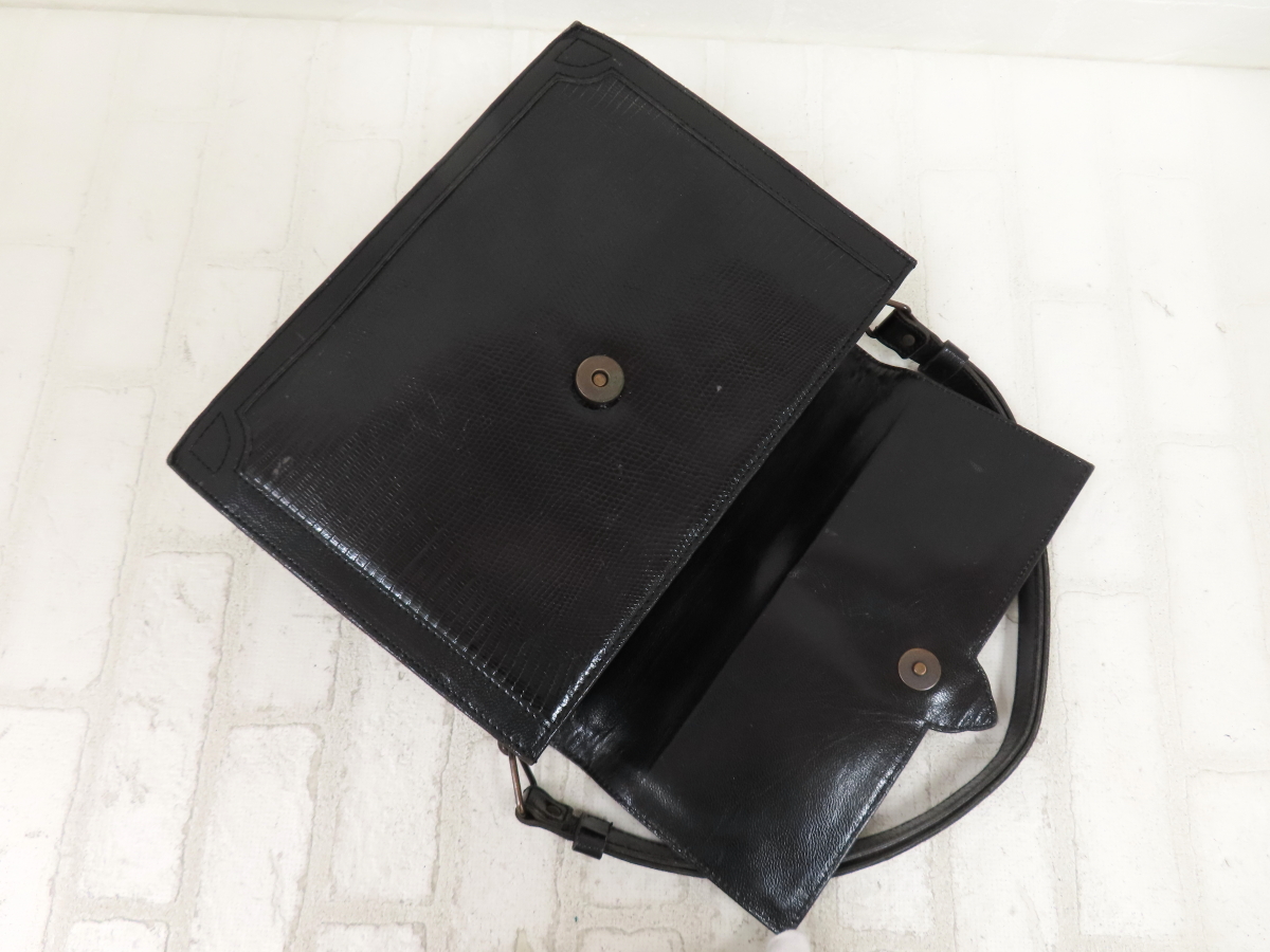 ◆美品◆YSL Yves Saint-Laurent イヴ・サンローラン◆リザード 本 トカゲ 革◆ショルダー バッグ◆ブラック ゴールド金具◆A15842 收藏