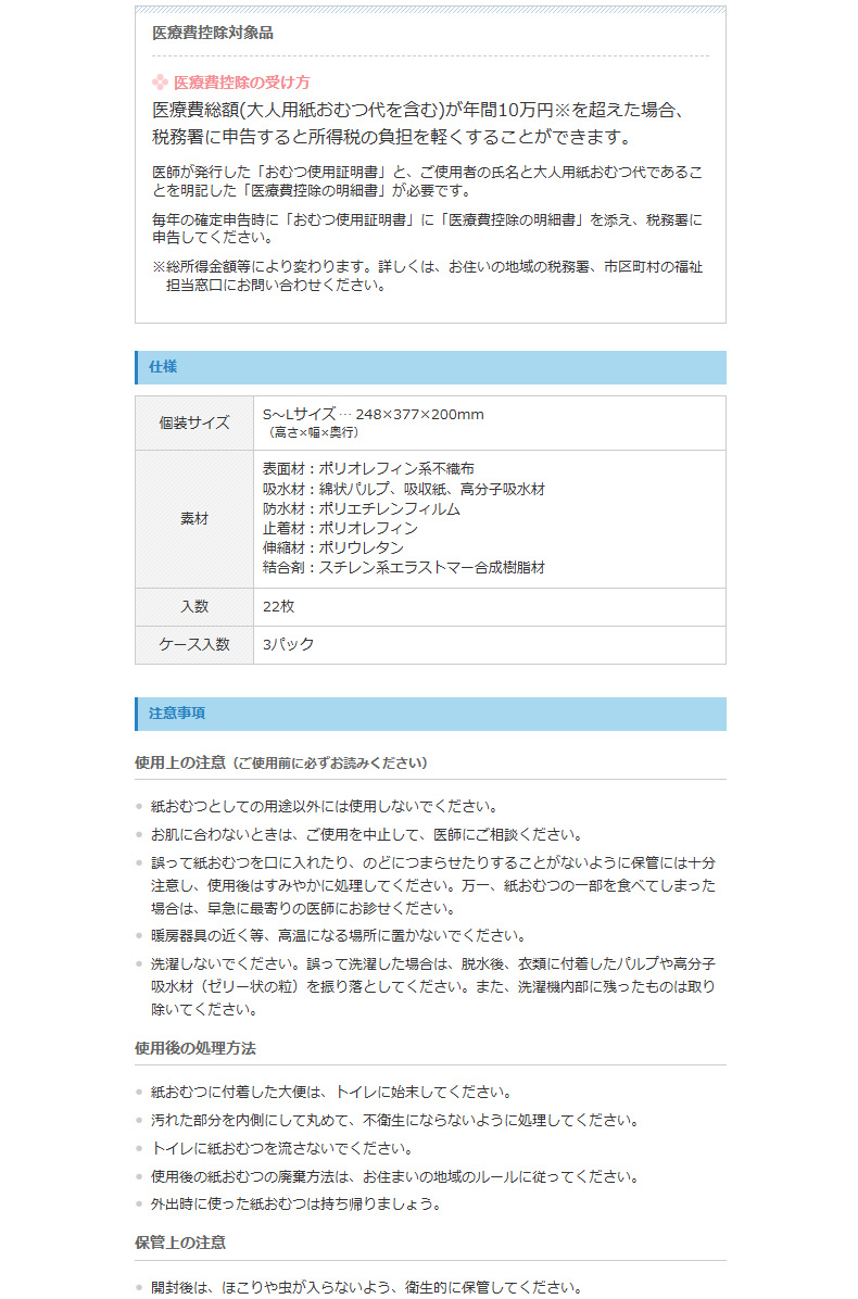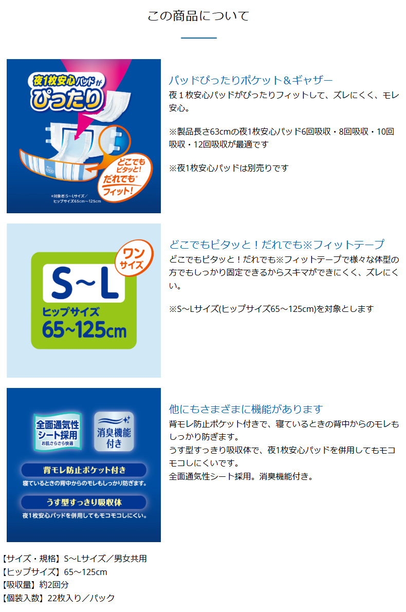 介護用おむつ エリエール アテント 夜1枚安心パッドのためのうす型テープ式 S~Lサイズ 22枚X3パック 收藏