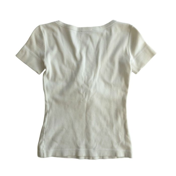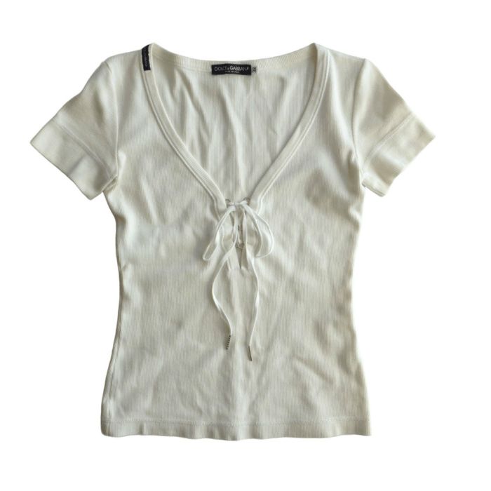 | ドルチェアンドガッバーナ(DOLCE&GABBANA) コットン レースアップ リブ トップス Vネック Tシャツ 半袖 38 ホワイト ウェア(中古) |