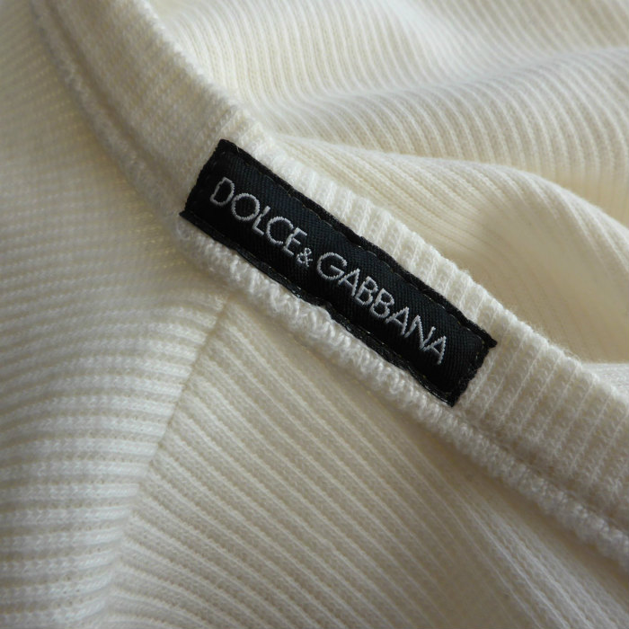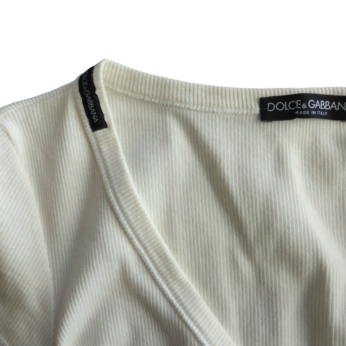| ドルチェアンドガッバーナのリブトップス。 フロントに深く切り込まれたVネックとレースアップが魅力の一着。 コットン×エラスタンの伸縮性のある生地で、ストレスフリーかつ肌なじみの良い生地感です。 ミニマムなシルエットと派手すぎないデザインが日々のスタイリングに落とし込みやすい一着です。 |