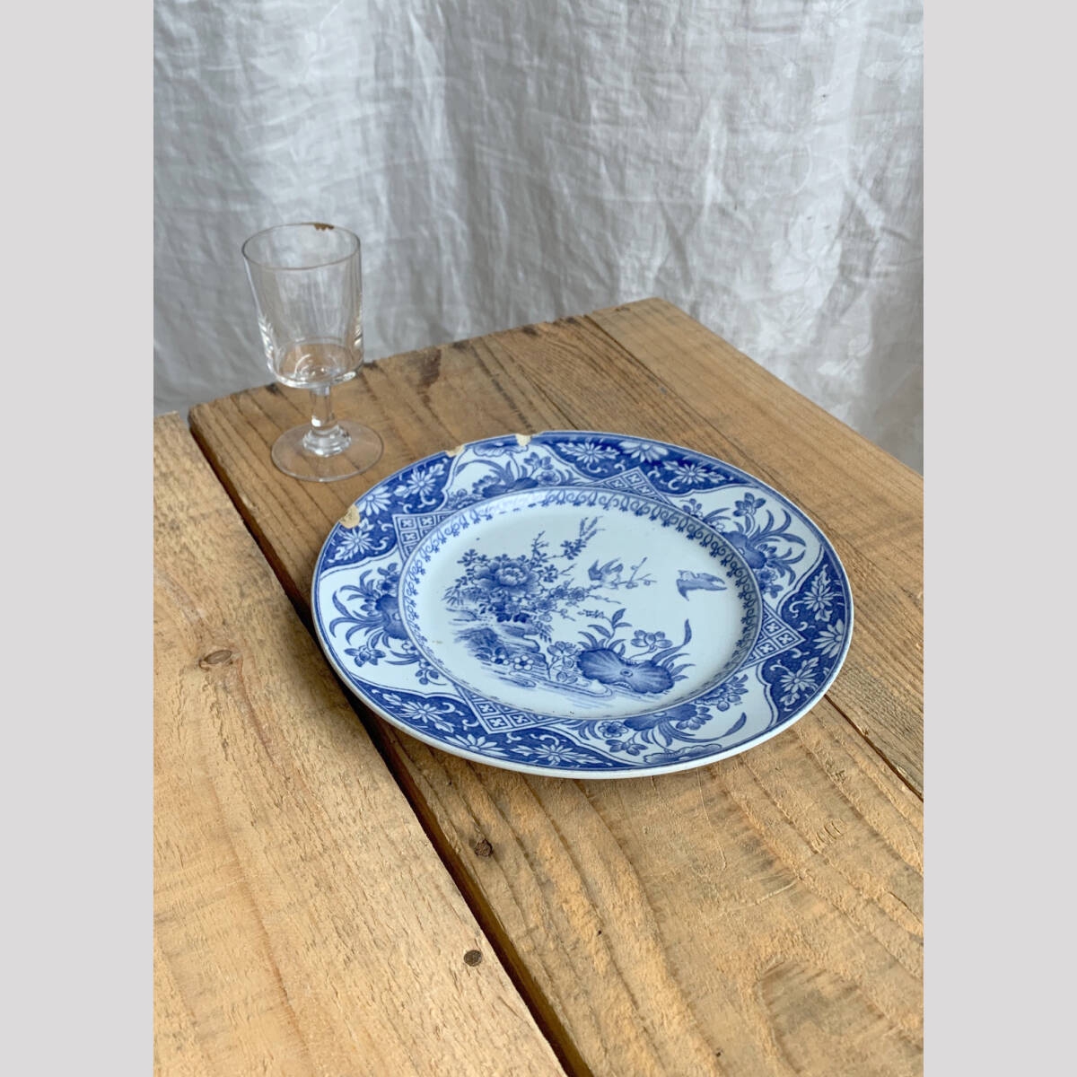 稀少 フランス 19世紀 クレイユ モントロー Creil et Montereau プレート ディナー 白釉薬 花柄 皿 陶器 ファイアンス 食器 アンティーク 收藏