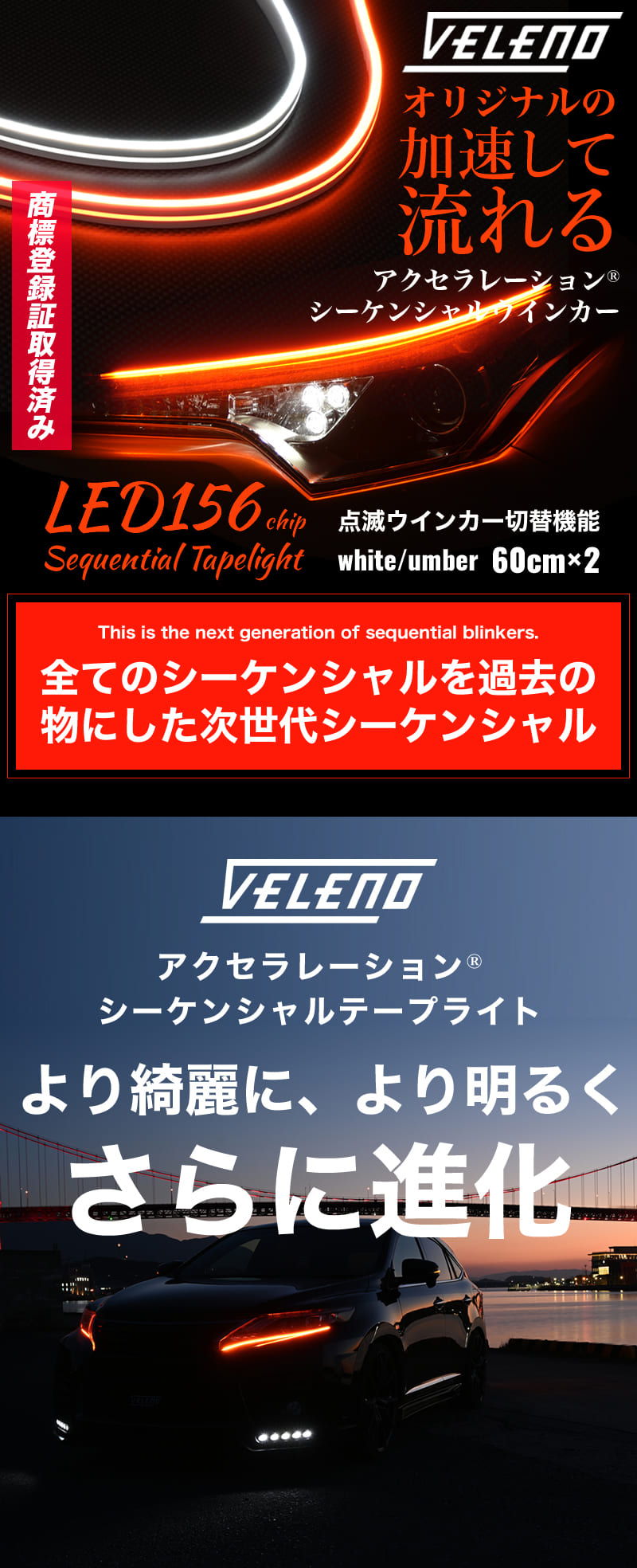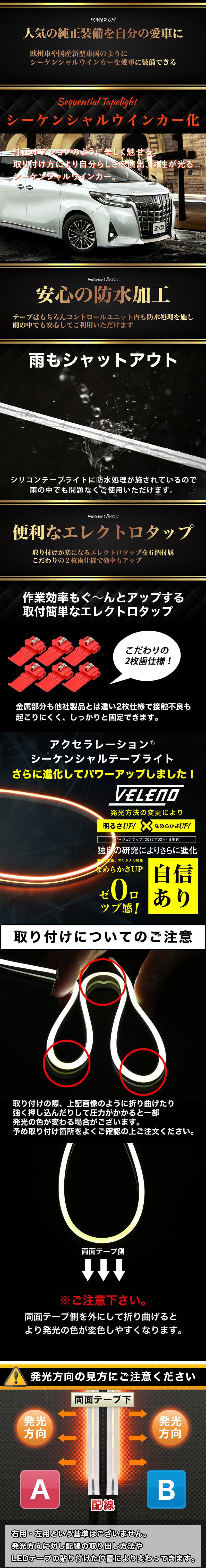 粒なし シーケンシャルウインカー ホワイト アンバー 2色 LED VELENO 60cm 2本 自作 DIY ウインカー リレー 流星ウインカー 圧倒的な明るさ 收藏