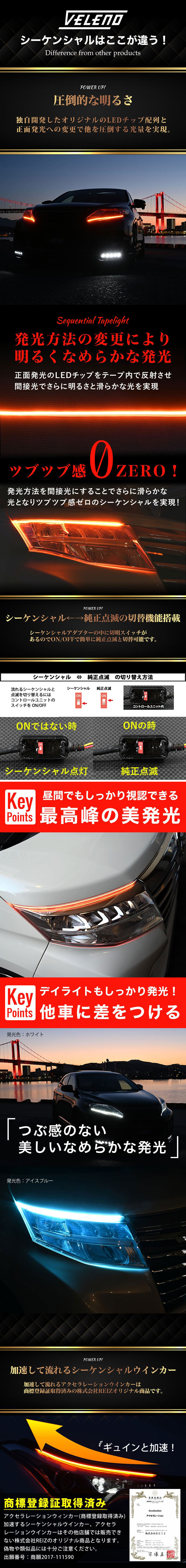 | ■こちらの商品はホワイト&アンバー切り替えとなっております。■ すべてのシーケンシャルを過去の物にした次世代シーケンシャルついに登場! 抜群の明るさとツブ感のないなめらかさを誇るREIZオリジナルのツインカラーシリコンシーケンシャル 流れる方向は配線側から先端に向けて流れます アクセラレーションウィンカー(商標登録済み) 加速するシーケンシャルウインカー、アクセラレーションウインカーはその他店舗では販売できない株式会社REIZのオリジナル商品となります。 偽物や類似品には十分ご注意ください。 出願番号:商願2017-111590 ※取り付け完了までは優しく扱ってください。 ※切断したり、両面テープの剥離紙を剥がした場合は、初期不良の対象外となりますのでご注意ください。 ※国産車のみ対応となります。輸入車の動作保証は致し兼ねますのでご了承ください。 ■バージョンアップ履歴■ 2022/3/4 発光方法の変更により明るさと光のなめらかさアップ LEDチップのツブ感がなくなり、よりなめらかに明るく発光 |