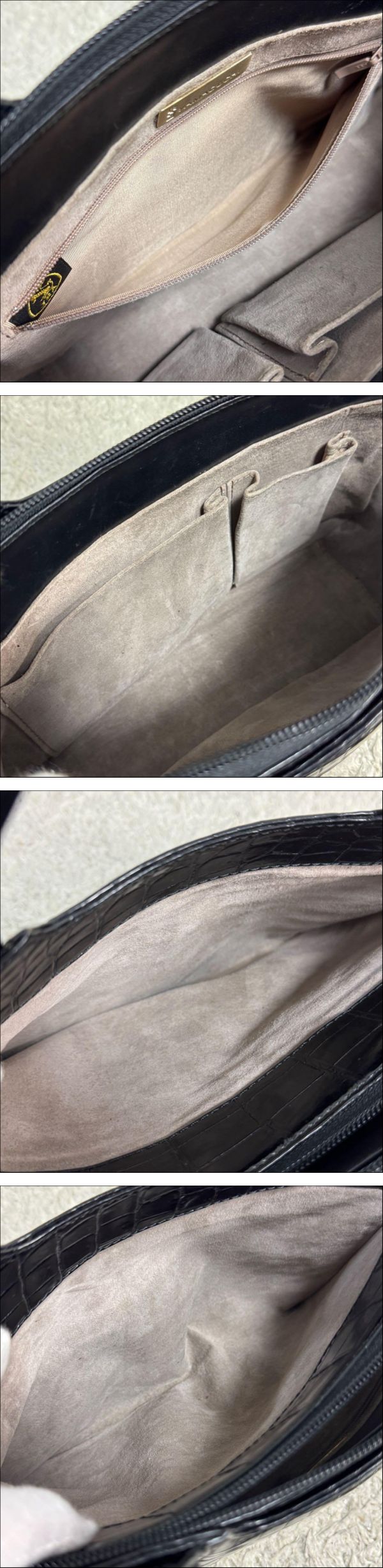 JRA認定 ヤマグチ シャイニングクロコダイルレザー センター取り トートバッグ ハンドバッグ 3部屋 鰐革 リアルクロコ ブラック 黒色 收藏