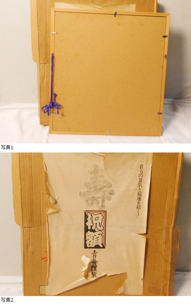 (北海道・九州地方の方は1290円をご負担ください。沖縄、離島はゆうパック送料着払いとなりますのでご了承願います。その他着払いをご指定の場合は送料が変わりますのでご了承ください。ご落札分のみのご入金の場合も着払いとなり、記載の送料よりも高くなる可能性がありますのでご注意ください)(※佐川急便発送ご落札者様から集荷依頼していただければ可能) ※お引き取り歓迎です。お引き取りに来られる場合は、梱包をしませんので、お取メッセージに、ご落札翌日のAM9時までにご連絡くださいm(__)m(引取りは金・土・日以外の朝9時~17時00分まで可能その他ご相談) ※ご落札後、同梱をご希望の商品がありましたら翌日朝9時までに「同梱依頼をする」をチェックしてご連絡ください。こちらから折り返し送料のご連絡をさせていただきます。 ※配送の日時を指定される場合,その他ご要望がありましたら ご落札翌日朝9時までに、お取引メッセージにお知らせ願います。発送の都合でそれ以降にご連絡いただいた内容のご要望はお受けできない場合がありますので予めご了承願います。ご指定日時やご要望は簡潔にご記入ください(宅急便指定可能時間→午前中・14~16時・16~18時・18~20時・19~21時) ★額の裏板(コルク?のような感じのもの)下がひび割れています ★額に入っています ★全体約 縦41.3 ×横38.3 ×厚み3.2 cm ★全体の重さ約 1480 g ★色紙部分のサイズ 約縦26 ×横 23 cm ★サイン 【 なし】 ★印【あり 】