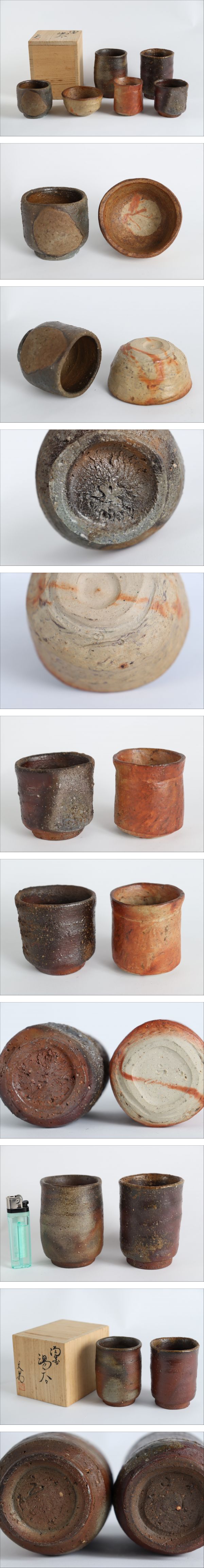 人気実力作家 川端文男 市県指定無形文化財 備前 窯変 ぐい呑 湯呑 まとめて 6点(酒器酒盃)F454 收藏
