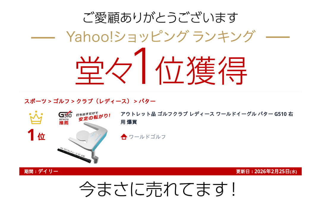 ランキング受賞! アウトレット品 ゴルフクラブ レディース ワールドイーグル パター G510 右用 爆買 收藏