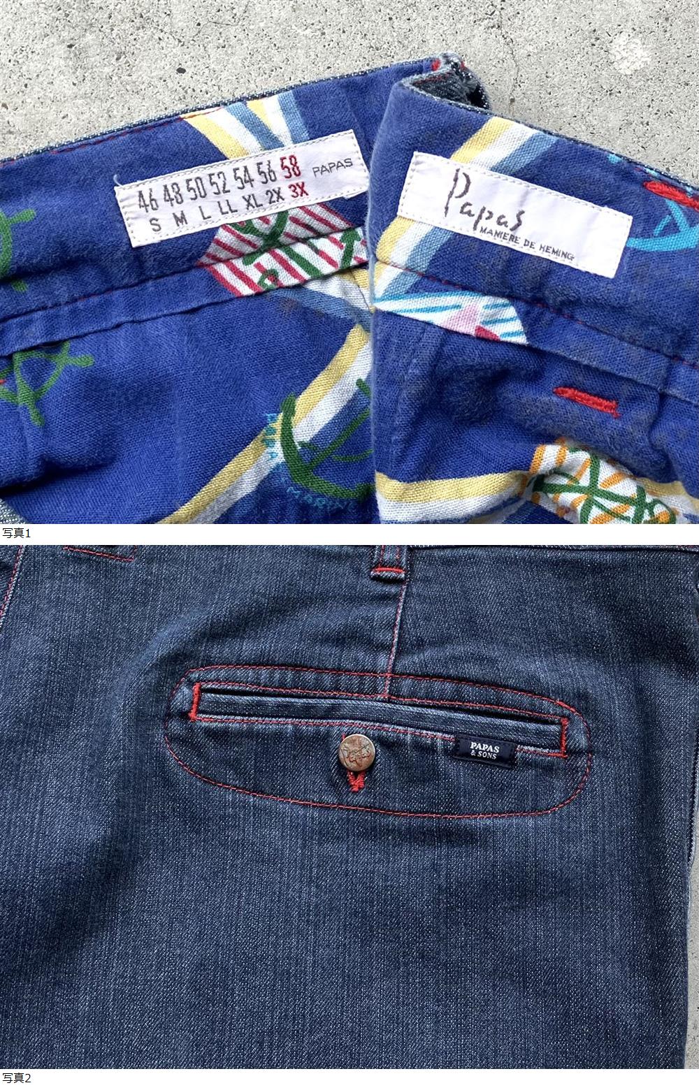 Papas 2プリーツ入り インディゴ染め ストレッチ デニムパンツ 58/3X パパス メンズ ジーンズ 3XL 2タック 收藏
