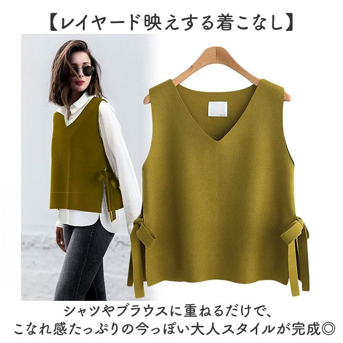 ☆ ライトグリーン ☆ Mサイズ ☆ Vネックニットベスト ニットベスト Vネック レディース ニット ベスト 重ね着 レイヤード ノースリーブ 收藏