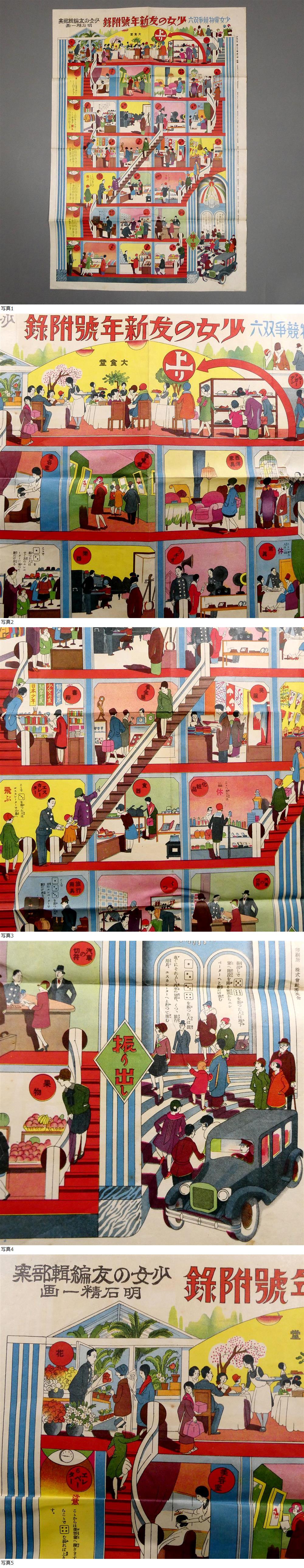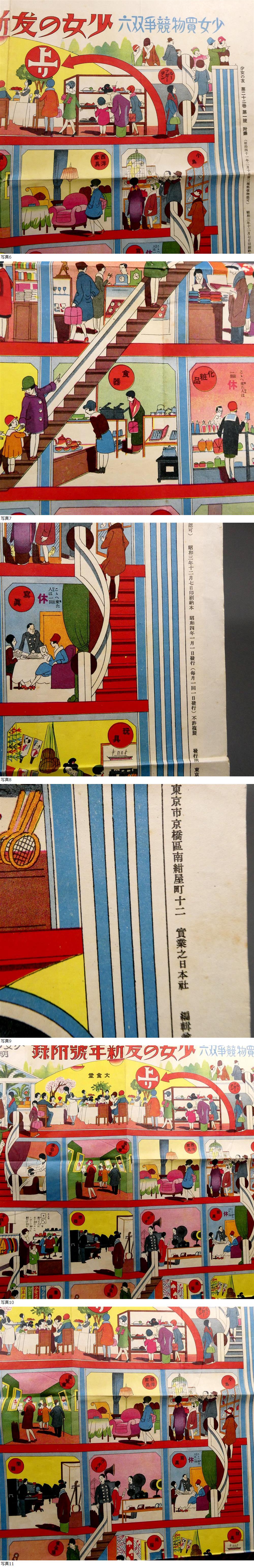 昭和4年◆モダンデパート◆「少女買物競争双六」◆少女の友新年号 實業之日本社◆エスカレーター エレベーター 化粧品 旅行◆モボモガ 38 收藏