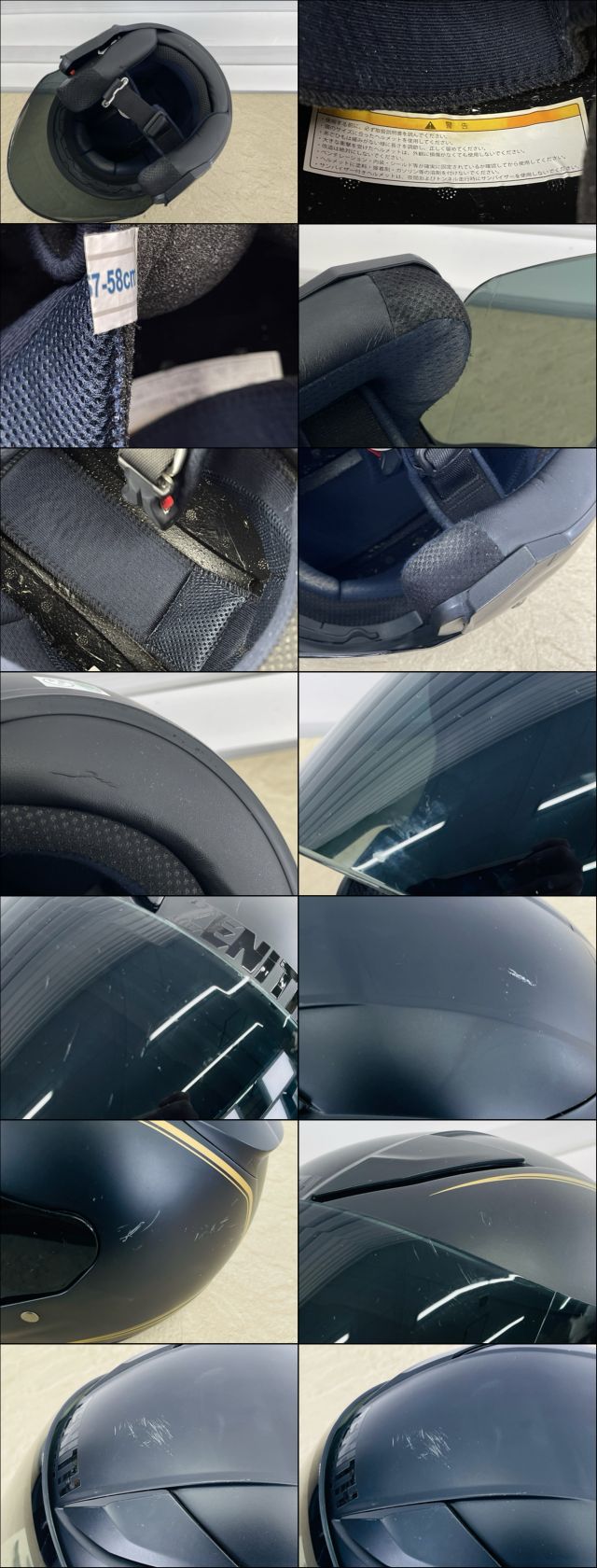 状態チェック担当者のコメント 表面の頭頂部や両側面の所々に白い傷があります。 シールドには小傷があります。 内部のベルトのカバーやおでこの部分の生地が白っぽく変色してて首裏のの部分?にひび割れしています。 商品は写真にあるもので全てです。 必ず写真で確認お願い致します。 他にもたくさん出品しています。 同一梱包致しますのでよろしくお願いします。 ※ジャンク品の商品は、故障や破損、欠品、動作未確認、 正常な動作のお約束ができない等、 様々な理由にてジャンク品として販売をさせて頂いております。 その為、商品の返品・返金・交換等の 対応は出来ません。 修理、パーツ取りなどを想定しお買い求め下さい。 ※保証について 動作保証と記載のある商品については、商品に不具合が生じた場合、 商品到着後8日以内は返品、返金をお受けいたします。 取付や工事が必要なものに関しましては、 それに必要な費用は当方では負担致しません。 取付費、工事費は保証対象外となります。 当方で販売いたしました商品が明確な原因で重大な事故へと発展いたしました 場合にも、商品代金の2倍以上の責任は負いかねます。 商品を利用される際には、必ず状態をご確認ください。 |